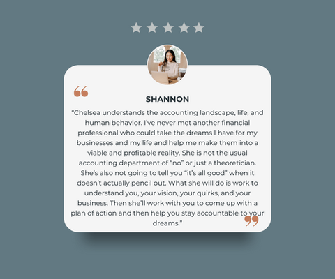 "I was referred to Chelsea by a number of different lawyers and financial gurus. My books were an absolute mess and I was terrified to show them to anyone. After our meeting, I finally got 7 hours of solid sleep for the first time in weeks. You cannot put a price on that kind of peace of mind!" - Alexis Austin Litle